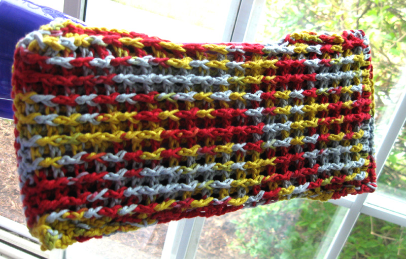 On another note, I have made a few household items, like this crocheted washable cotton cover for our swiffer. Much more economically and environmentally sound than buying the disposable things. These also scrub better.